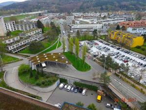 Kantonsspital Baden, Personalhäuser und Bushof ReferenskodQ.5.8Visningsdatum2017 - 03.10.2025NivåDossier Q Hauri, Hans, Fotos von Dättwil Q.5 Friedhof, Kantonsspital Baden mit Kubus, Parkhaus , Blick vom Kantonss…